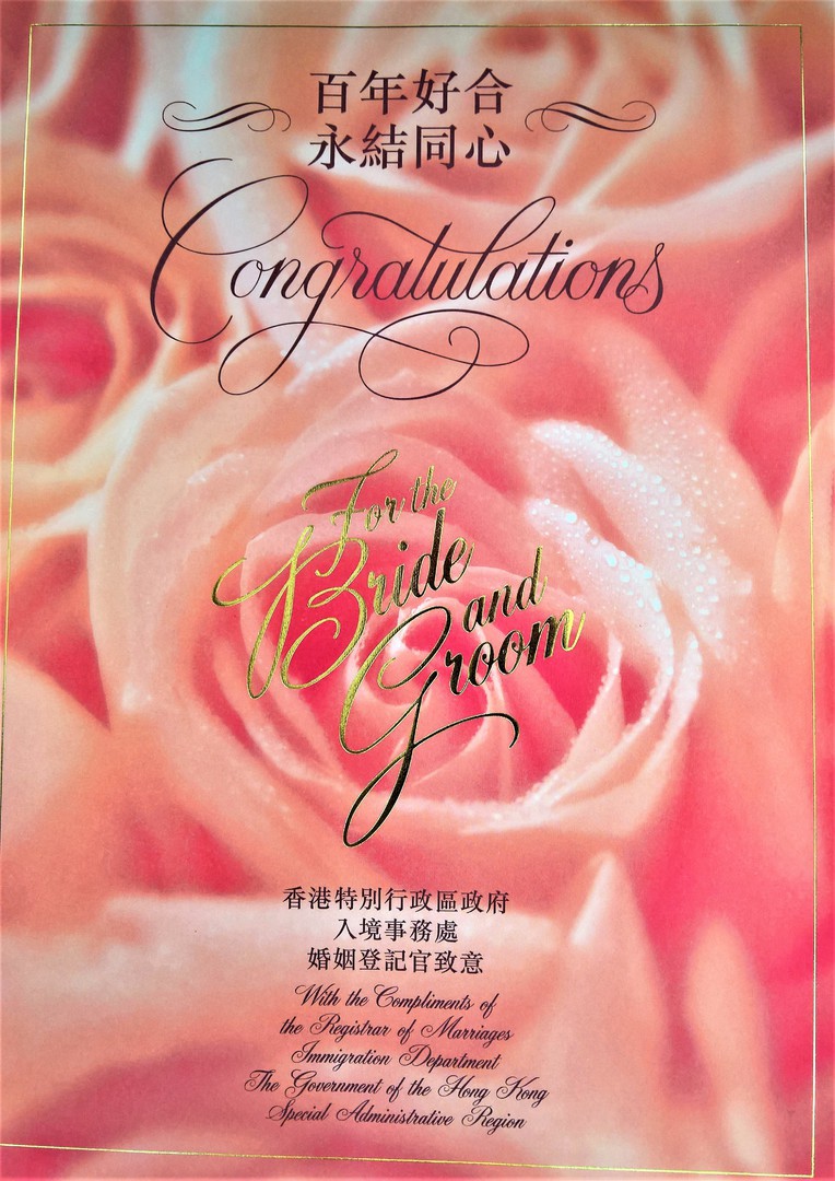 Man muss bereits zwei Arbeitstage vor der Heirat persönlich beim Marriage Registration and Records Office in Hong Kong anmelden. Die Heirat findet in der ausgewählten Marriage Registry statt. Dabei 715 HK$ in bar zu bezahlen (die „Fee“ kann sich ändern), darüber hinaus sind zwei Trauzeugen erforderlich (bei der Trauung). Es können Kopien der Heiratsurkunde zu je 280 HK$ beantragt werden (die „Fee“ kann sich ändern). Zur Heirat hat man unbedingt pünktlich zu erscheinen, da der Termin sonst verfällt. Alle beteiligten Personen müssen sich ausweisen können (Reisepass).