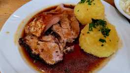 Roast Pork with Crust: No Bavarian inn is complete without a roast pork or roast with crust. While in Württemberg, roast pork tends to be prepared without a crispy crust, Bavarian roast pork is always served with a crust. I use shoulder meat for the roast pork; if you like it really juicy and even more crust, you should use a whole piece of pork belly. The highlight is the roasting sauce; I don't use red wine here, but rather a dark export beer.