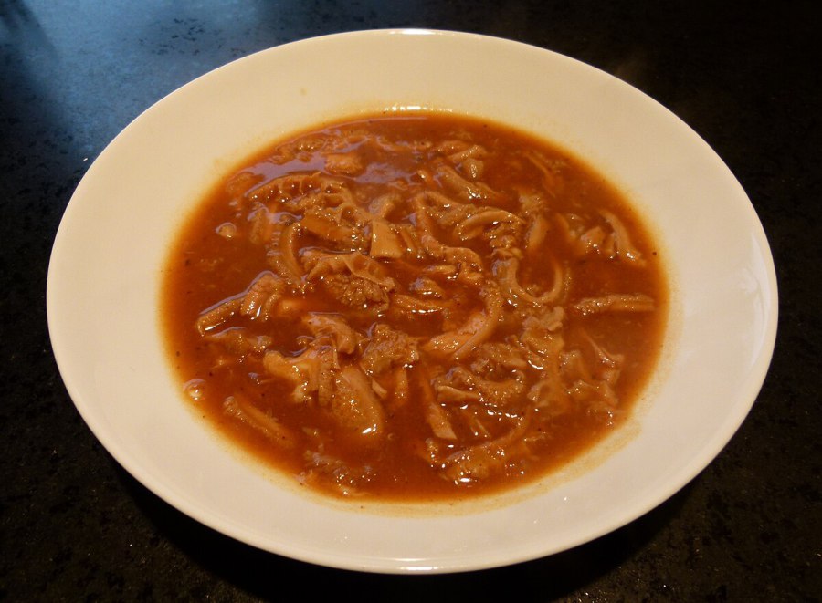 Simmer the soup over medium heat for about 30–40 minutes, until the tripe is tender and the flavors have infused the soup. Before serving, season to taste with salt, pepper, and, if desired, a little more vinegar.