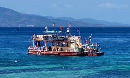 The Bikini Floating Bar is anchored in the bay off Sabang Beach. It offers all the usual drinks and snacks. If you're planning on spending a whole day at the floating bar, sunblock and a hat are a must – the sun can be blazingly hot at times.